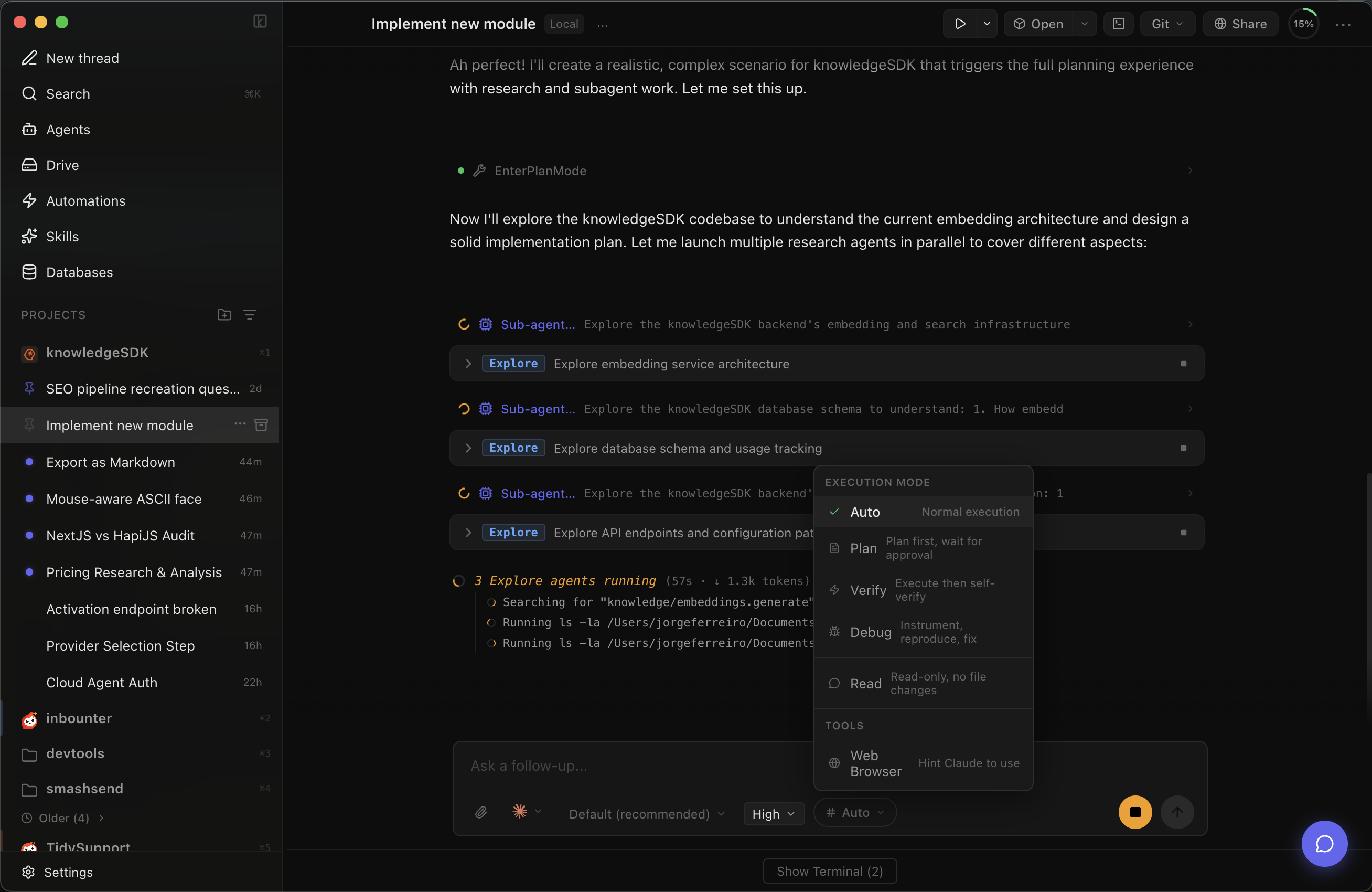 Read-only exploration. Claude answers questions without touching a single file.
